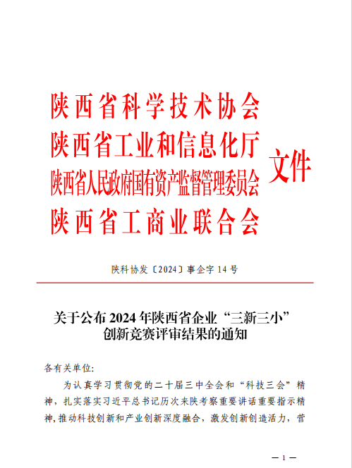 渭南市10项成果荣获2024年陕西省 企业“三新三小”创新竞赛奖