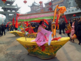 划旱船:缓解压力,疏经通络。旱船多在乡村 农民家中演出,每逢农历春节,从农历正月初一活 动到农历二月初二(龙抬头节),以此种形式祈求 来年风调雨顺,大吉大利。