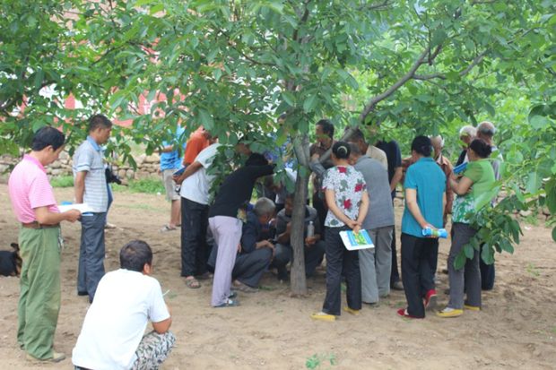 5月中旬,市科协接到林源金农早实核桃示范基地大面积植株病害这一情况后,立即联系了渭南市核桃专家郭怀宾教授,将植株病情详细进行了说明,经专家分析认定为核桃腐烂病和霉菌病后,市科协立即组织核桃种植户和核桃基地开展防治工作。市科协于5月24日与市林业局联系协调,邀请市林业局森防站高级工程师吉双龙和毕业于西北农林科技大学的研究生黄晶两人,驱车2个多小时亲自深入林源核桃基地,实地查看现场和病斑,分析了病因后,认为今年的核桃收霜冻影响,树势较弱,容易受病菌侵害,现场将病情病理向基地群众进行了实地讲解,并提出防治办法,组织群众进行刮皮和涂抹药物防治。经过市科协与林业局以及核桃基地的共同努力,开展一个月的紧张防治,目前病情已得到控制,也为来年核桃丰产丰收打下基础。