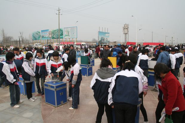 和每次“三下乡”一样,医疗义诊的宣传点摆的最多,群众也最多。广场西侧南北大约20米宽的地方,布满了市县卫生系统的服务点。渭南市中医院、渭南市第二医院、……渭南中心血战的医务工作者就忙得不亦乐乎:量血压、体重,咨询、把脉、开处方、推拿、常规体检,这些原本要去医院花钱才能享受的服务,如今在自己家门口免费就可以进行,能不让群众高兴吗!村民李秋菊说:“今天可真是丰收了!看了戏,听了歌,问了病、开了药。还拿了农业技术资料、得了科普知识挂图,真正是美咋咧”。