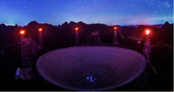 500米口径球面射电望远镜(Five-hundred-meter Aperture Spherical radio Telescope,FAST),位于中国贵州省黔南布依族苗族自治州境内,是国家“十一五”重大科技基础设施建设项目。中国天眼是建立在一张世界上跨度最大、精确度最高且结构和工作方式都非常特殊的蜘蛛网上,这张借助50根钢柱、670条钢索和2225根下拉索,上面覆盖了4450面反射镜的大型蜘蛛网会因牵引器施加于自身的拉力而变形,倘若配合顶部的接收机共同活动,中国天眼就能有效观测太空中不同区域中的电磁波信号,这也就是中国天眼的观测敏感度和数据接收能力比其他国家的同类产品更为强大的原因。