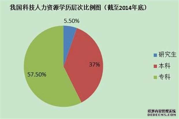 图一:我国科技人力资源学历层次比例图(截至2014年底)