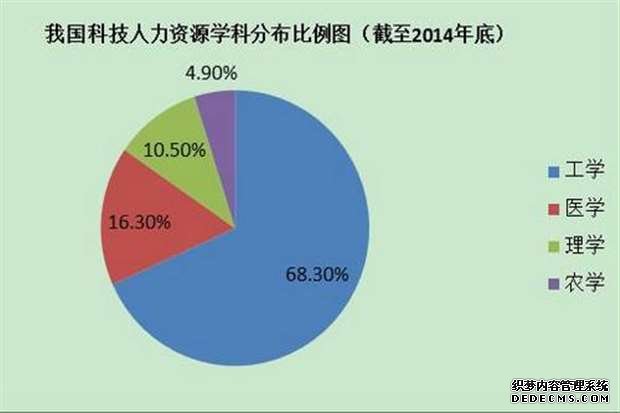 图二:我国科技人力资源学科分布比例图(截至2014年底)