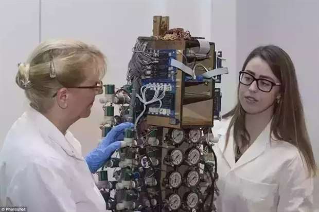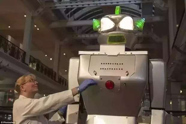 管理员凯特·珀克斯(Kate Perks)正启动类人机器人Cygan,它是皮埃罗·费奥里托博士(Piero Fiorito)1957年建造的,是首批可双脚行走的类人机器人之一。
