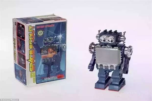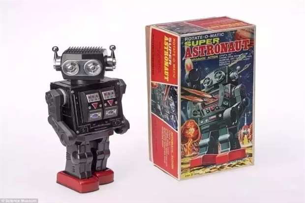科学博物馆集团董事伊恩·布拉奇福特(Ian Blatchford)说:“这次展览旨在探索人类对重塑自我的痴迷,不是使用油漆或大理石,而是通过金属。通过凝视这些令人敬畏的机器人,我们可以发现人类的希望、恐惧以及梦想。”图中是参展的玩具机器人。