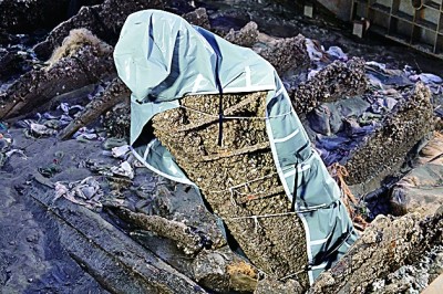 11月21日,露出真容的古船桅杆。新华社记者 金立旺摄