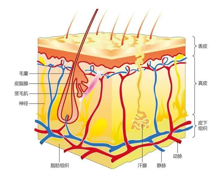 我们的皮肤由表皮及真皮两部分组成。表皮是最外面一层,它里面有一种细胞叫黑素细胞,这种细胞的功能是产生色素颗粒,保护表皮细胞不被紫外线所伤害。