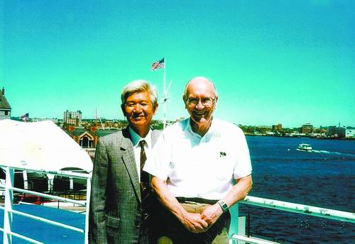 ④1985年,沈焕庭(左)与美国工程院院士、国际著名河口海洋学家普里查德合影。