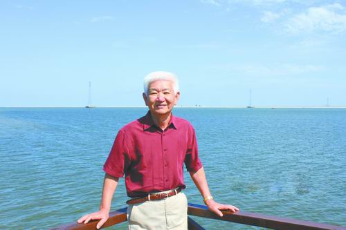 ①2012年9月,沈焕庭在新建的青草沙水库。