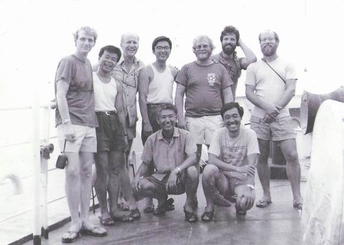 ▲1980年,沈焕庭(前排左)参加中美海洋沉积作用联合调查研究。
