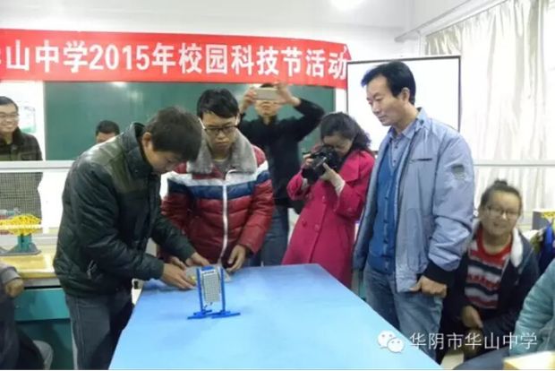 11月6日,华山中学2015年校园科技节活动启动仪式在华山中学综合楼隆重举行,启动仪式上,青少年科技创新大赛优秀辅导教师樊亚利向学生讲解了科技创新大赛知识,华山中学领导,市科协副主席分别做了重要讲话。启动仪式后,还进行了机器人表演、步行机演示、车床操作演示、学生互动等。