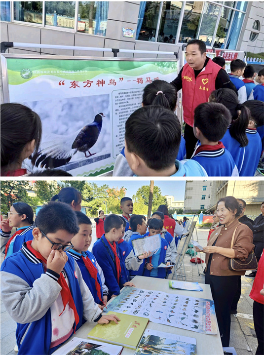 褐马鸡保护研究中心的工作人员通过生动的图片、趣味十足的讲解,介绍了褐马鸡等珍稀鸟类的生活习性与保护意义,唤起学生们对生物多样性的关注。