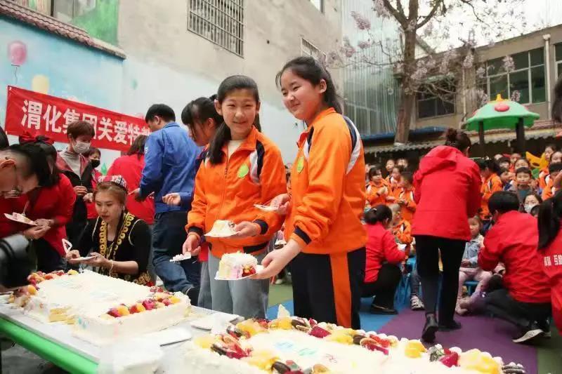 活动现场,来自渭南高新区党群工作部及渭化集团的20余名志愿者,为学校师生捐赠了学习用具和校服等物品,与孩子们一起互动表演了歌曲《小猪佩奇》、舞蹈《亚力古娜》《欢乐草原》等文艺节目。现场志愿者和学生们一起切蛋糕,与家长一起交流孩子们的成长故事,吃着甜甜的蛋糕,孩子们脸上洋溢着幸福的微笑,学校操场上充满了孩子们的欢声笑语。