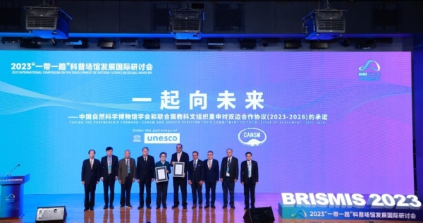 在开幕式上,举行了“一起向未来”——中国自然科学博物馆学会和联合国教科文组织重申对双边合作协议承诺仪式。