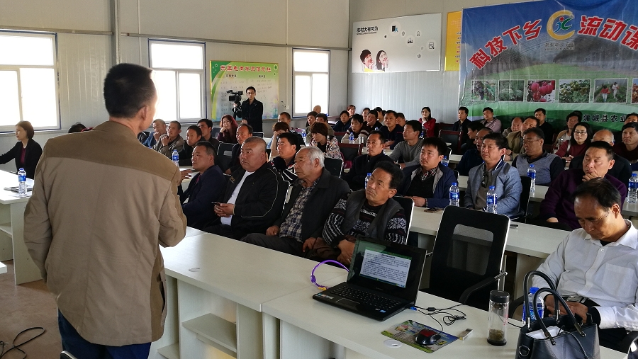 秋景深老师是第二次到东王村授课。他首先了解了一年来该村群众设施农业发展、作物种类、病虫害防治等有关情况,结合群众关心的问题,为果农传授了自己多年来精心总结的大棚作物病虫害防治偏方、科学施肥实践应用体系,让群众通过形象生动的语言掌握了病虫害管理和防治、怎样用药、如何选药、配药比例、大鹏施肥方法等知识。