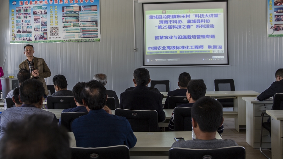 4月13日,渭南市科协、蒲城县科协联合举办“科技之春”宣传月培训会,邀请中国农科院科技特派员秋景深老师为东王村群众作智慧农业科技培训。