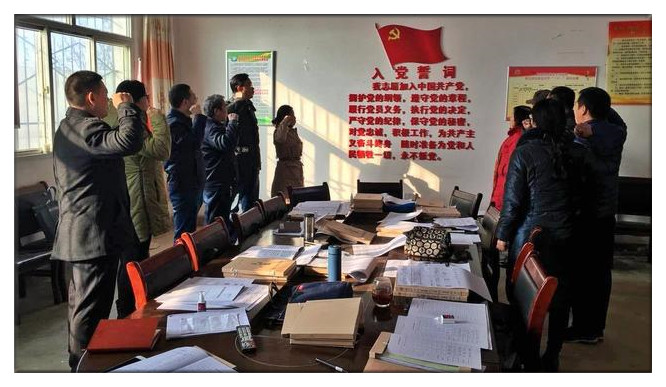 小雪时节,渭南南部塬区气温已然降至零下三四度。11月30日一大早,渭南市科协全体党员干部冒着刺骨的寒风来到了扶贫包联的临渭区阳郭镇马泉村,今天既是市、区两级确定的扶贫日,也是市科协在扶贫一线开展的第2个党员活动日。在马泉村寒气逼人的会议室内,以“不忘初心、牢记使命”为主题的党员活动日在隆重的氛围中进行着。全体党员干部一起听党课,重温入党誓词,市科协杨翠红主席和全体干部就马泉村今后各项脱贫工作的开展进行了深入讨论,为马泉村产业发展和脱贫攻坚工作出谋划策。