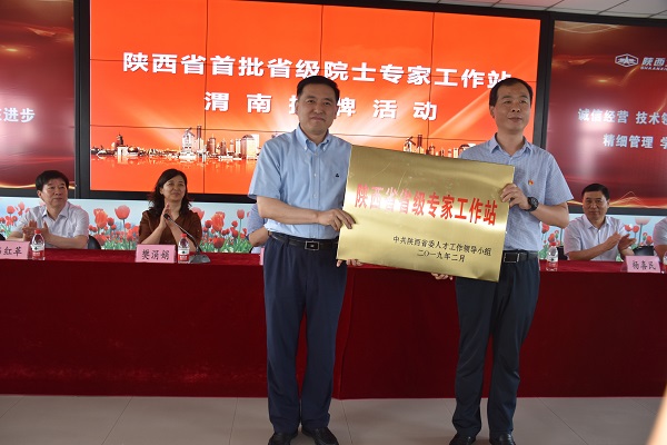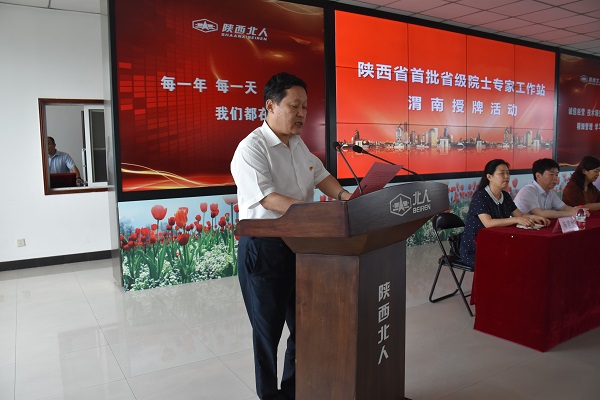 渭南高新区党工委书记朱忠效在授牌仪式上做了热情洋溢的致辞,省科协副主席韩开兴宣读了《省委组织部院士专家工作站认定通知》。随后,韩开兴、孟小瓒分别为渭南经济技术开发区酵素基地院士专家工作站、陕西北人印刷机械有限责任公司专家工作站授牌。