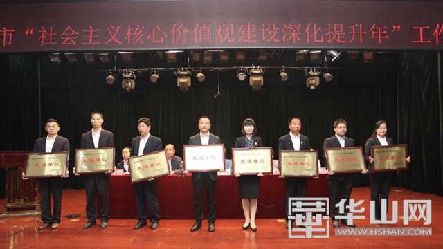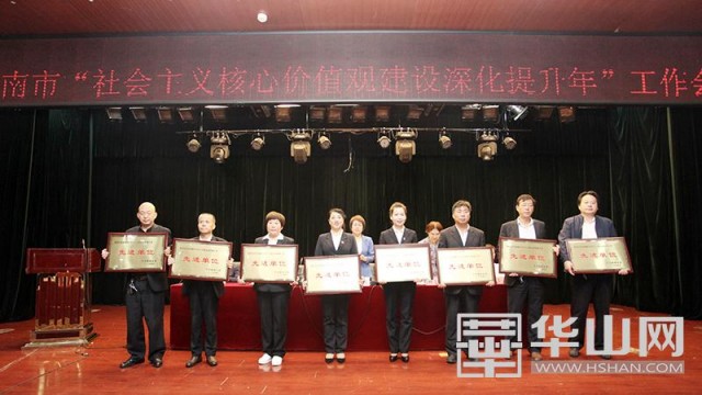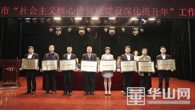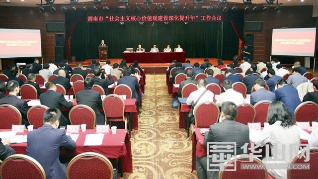 会上,市委宣传部副部长、市文明办主任田芳宣读了《中共渭南市委关于表彰2017年度全市有关重点工作先进集体先进个人的决定》并向2017年渭南市培育和践行社会主义核心价值观工作先进单位授牌;市委宣传部副部长张百献宣读了《渭南市“社会主义核心价值观建设深化提升年”实施方案》;临渭区、合阳县、白水县、市教育局、市民政局、市档案局等相关部门的主要负责同志作经验交流发言。