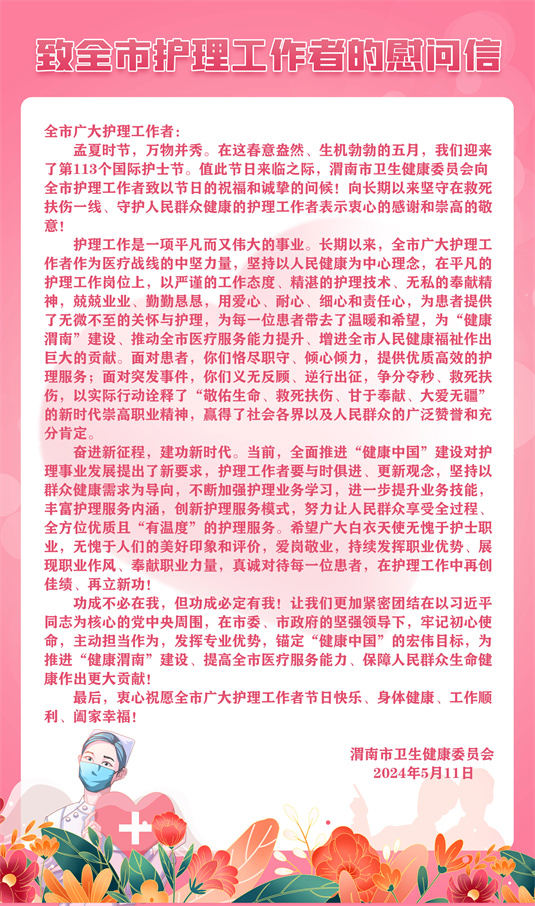 【健康渭南】全市护理工作者,您有一封慰问信,请查收!