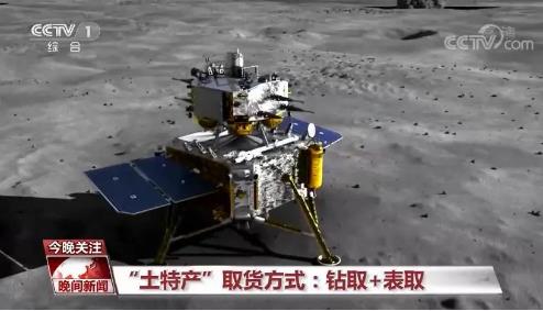 航天科技集团五院 嫦娥五号探测器主任设计师 姜水清:为了实现这个任务,我们实际上是设计了三个产品,有个四自由度采样机械臂,然后末端又带了两种采样器,一种是可以实现铲挖,一种是可以实现浅钻,来实现不同类型月壤的采集。它在整个着陆器的可达范围内都可以采样,假设咱们的着陆点不是那么理想,如果是有一个大石头,我采不动,我可以给它稍微换一个地方,稍微软一点,我肯定就能保证能采到一定的样品。