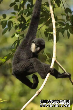 北白颊长臂猿是国家一级保护动物IUCN 将其列为极度濒危物种