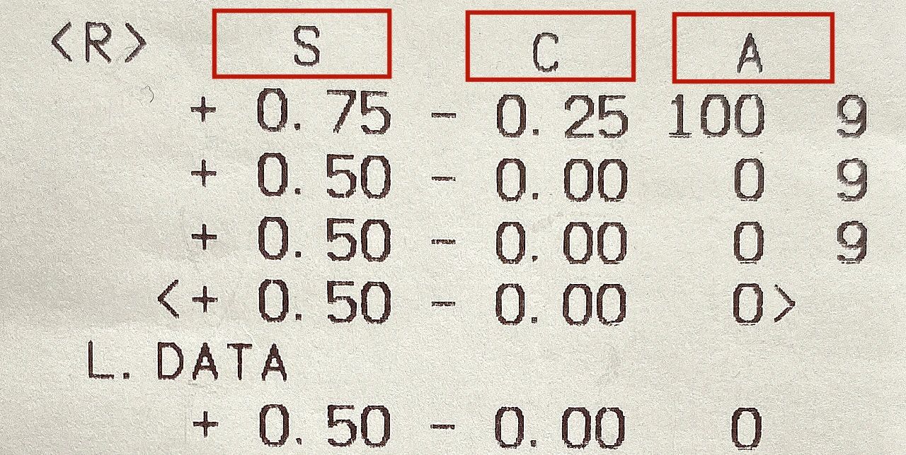 L.DATA的数据通常是3次验光后,最终的综合参考值(因设备差异,有些验光单上用S.E.同样表示3次验光最后的综合参考值)。