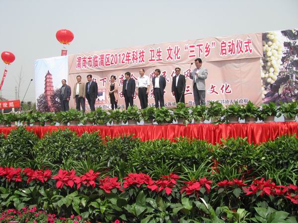 4月27日,渭南市临渭区2012年科技文化卫生“三下乡”活动在下邽镇隆重举行,来自全区30多家成员单位的300余名科技、医疗、法律和文艺工作者把科学文化、政策法律和文明礼仪等科普知识送到基层,送到群众手中,让群众品尝丰盛的“文化大餐”。