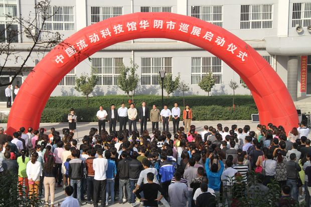近日中国流动科技馆华阴巡展活动在华阴市职教中心正式启动。出席活动的领导有:省科技馆王晓东馆长,市科协王民才主席,陶东京副主席,华阴市市委书记卢发兴,市人大主任段孟海,市长程军,市政协主席王春生,市委常委、宣传部长杨涛,市政协副主席张敏宵等。这次活动展览的主要内容由50项科普展品和科学演示台、球幕影院组成,通过“科学探索”、“科学生活”、“科学实践”三部分内容的展示,以达到激发观众科学兴趣、启迪科学观念、培养实践能力的目的。