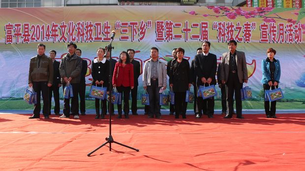 3月21日,富平县2014年“三下乡”暨第二十二届“科技之春”宣传月活动在县文化中心广场启动,省科协副主席党广录出席启动仪式并看望了省科协“百名专家下基层”活动的8名农业专家。