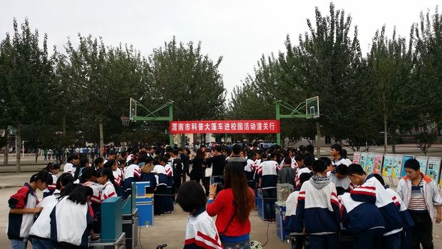为了配合搞好本次活动,渭南市科协的科普大篷车深入到县城关三中学校开展“科普进校园”活动,20多件车载展品和节约水资源、防灾减灾、海洋生物与星座麦吉全真立体图像四个科普展览,使全校师生尽情享受着丰盛的科普大餐。当天活动,共展出展板146 块、发放资料6000余份,师生1260余名,参与群众8000余人次。