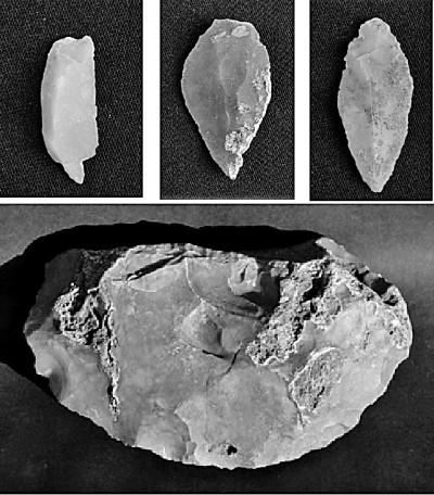 模式四:旧石器时代晚期模式。以石叶及其制品为特色,使用软锤技术、压制技术和间接剥片技术,石器类型多样,以端刮器、矛形尖状器、雕刻器等为主体,工具多小巧精美。