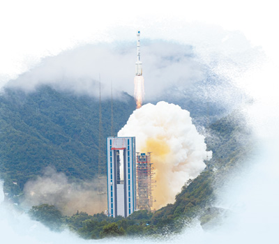 2007年4月14日4时11分,随着指挥员一声“点火”命令,托举北斗二号首星的“长三甲”运载火箭,在惊天动地的轰隆声中,孔雀开屏般绽放出美丽的尾焰,扶摇直上,飞向苍穹,渐渐融入黎明前漆黑的夜色……