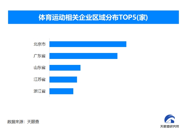 而根据天眼查专业版的最新数据,截至目前,现存与体育运动相关的企业39.5万余家;其中,2024年1-6月,新增注册相关企业4.4万余家。从地域分布上看,北京、广东以及山东三地,体育运动相关企业数量位居前列,分别拥有5.9万余家,5.3万余家以及2.4万余家;从成立时间来看,成立于1年内的相关企业占22.5%,成立于1-5年的相关企业占49.4%。