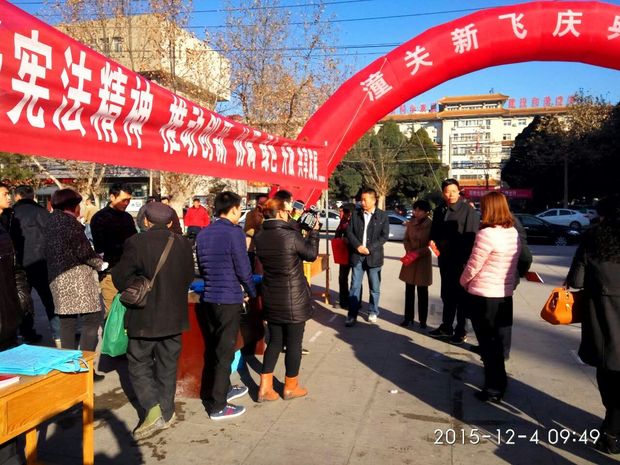 为进一步学习宣传宪法,提高我市公民的宪法意识,12月4日,渭南市科协联合潼关县依法治县办、县司法局、县科协等单位在潼关县城祥和广场联合开展了集中法制宣传活动。活动以“弘扬宪法精神,推动创新、协调、绿色、开放、共享发展”为主题,共有29个部门单位参加。