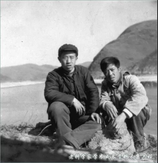 1963年李玶(左)与同事潘裕生(右)在丹江口野外调查合影。
