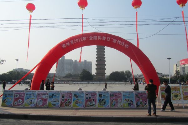 2012年蒲城县全国科普日宣传活动于9月19日上午在县城中心广场举行。围绕“食品安全与公众健康”主题,由蒲城县科协牵头组织,县卫生局、科技局、食品药品监管局、质监局、安监局等22个成员单位参加了此次广场宣传活动。县委常委县委办主任王树勋、县人大副主任李全友、政府副县长刘巧莲、政协副主席赵福生在科协主席丁晓玲的陪同下亲临活动现场进行指导。