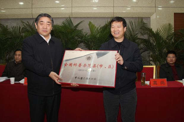 12月22日,蒲城县委、县政府召开全县科普工作表彰会议,隆重表彰全县科普示范创建等工作。省科协副主席王前进代表中国科协向蒲城县授牌,省科协宣调部部长蔡伟、蒲城县委、县人大、县政府、县政协主要领导及分管领导参加会议,市科协主席王民才出席并讲话。