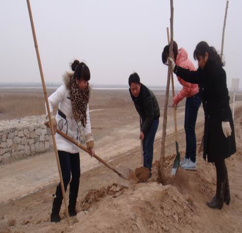 在植树现场,大家舞臂挥锹,有的扶树,有的培土,个个干劲十足,以实际行动为保护生态环境、建设绿色东大门贡献一份力量,为低碳生活种下绿色希望。