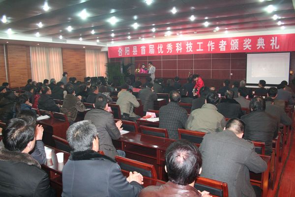 3月2日上午,合阳县首届优秀科技工作者表彰会在关雎贵宾楼举行,来自各镇办科协、企业科协、各学(协)会、有关部门的负责人、新闻媒体的记者以及优秀科技工作者共100余人参加会议。市科协副主席谢金风应邀参加颁奖,合阳县委、县人大、县政府、县政协的主要领导及分管领导也应邀出席表彰大会。
