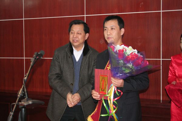 合阳县委常委、统战部部长张永利为首届优秀科技工作者获得者颁奖