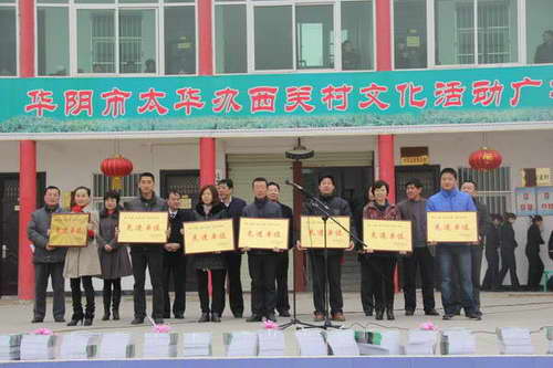 启动仪式上,市委办、政府办表彰奖励了十九届“科技之春”宣传月活动先进单位和先进个人;“科技之春”组委会21个成员单位向西关等6个村捐赠科普书籍2600本;聘请渭南市委党校李天军副教授为干部群众辅导解读一号文件,80余人聆听;华阴市美协12名会员现场挥毫泼墨,为群众赠送书画作品50余幅;华阴市有关领导为科技文化卫生法律“四下乡”宣传服务队授旗;文艺工作者现场表演了13个精彩的文艺节目;渭南市科协科普大篷车也为群众送来了丰富的科普展品和科普展板,为提升广大群众科技意识和科学素质,创造更加美好的幸福生活提供服务。