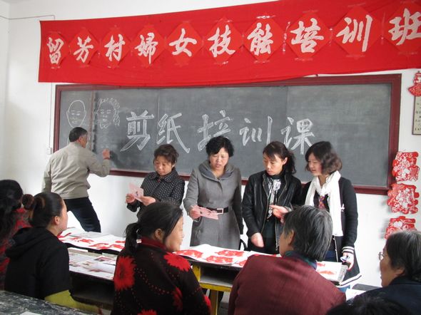 村剪纸爱好者和各旅游景点所在村的闲散妇女共30余人参加培训。