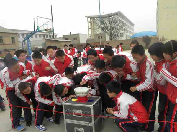 活动中,陕西省科技馆、渭南市科协的两台“科普大篷车”上的科普展品和科普展板,为前来参观的师生送上了一道丰盛的科普大餐。面对一件件神奇美妙的科普展品和一块块图文并茂的科普展板,孩子们按捺不住内心的激动,迫不及待地走进操场,并争先恐后地上阵亲自操作起来,通过动手演示和研究,其中的原理和奥妙终于被揭开了,围观的同学们不时发出奇妙的感叹之声,整个校园成了传播学习科普知识的大课堂。