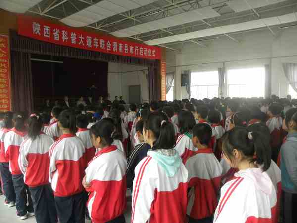 4月10日上午,“陕西省科普大篷车联合渭南县市行”活动在合阳县路井镇中学隆重举行,县委常委、统战部部长张永利同志致词,省科协工作队队长李文军做了讲话,两位学生代表先后登台发言,市科协副主席陶东京主持,22个班级1200余名师生参加活动。
