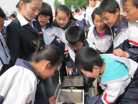 省科技馆和市科协的两台“科普大篷车”为学生们带来的涉及光、声、电等学科的40件科普展品和内容丰富、图文并茂的200余块宣传展板,吸引了学生们好奇的目光。大家在亲自动手操作的同时左观右看,对每件展品都感到特别的神奇,工作人员也忙着向他们讲解其中的科学原理和科普知识,并手把手地指导操作。一位学生兴奋地说:“这次活动使我们直观地掌握了平时在书本上难以理解的科学知识和原理,感受到了科学的神奇魅力,激发了我们对学习科学知识的兴趣。”