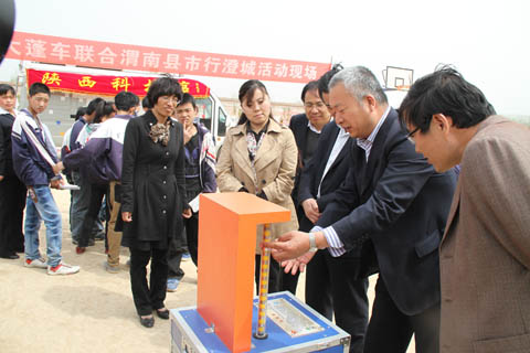 为了“强化科学传播,展现科技魅力”,充分发挥“科普大篷车”的作用。4月19日,由陕西省科技馆联合渭南市科协、澄城县科协共同开展的省市“科普大篷车”市县行科普宣传巡展活动在澄城县冯原镇中小学举行,2000余名师生在体验中感受科技魅力、学习科技知识、寻找科技带来的乐趣。澄城县县委常委、县委宣传部部长郑丽琼、县科协主席张波、县教育局局长杨发盈参加了活动,并同全体师生共同参观体验。
