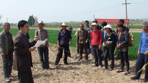 现场会上,技术人员为农民介绍了小麦吸浆虫的发生规律、形态特征以及吸浆虫的危害性,还详细讲解了吸浆虫的防治方法以及用药剂防治的配方、用量,并现场指导群众开展防控,向群众免费发放技术资料和防治药品,解决了群众的燃眉之急,使群众高度认识到小麦吸浆虫防控工作的重要性和紧迫性,为当前小麦生产安全提供了强有力的技术保障。