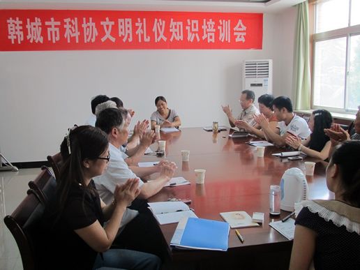 为了贯彻市委宣传部、市文明办等部门组织开展的“在全市开展扮靓韩城、提升文明城市形象提升主题实践活动”,落实文明礼仪传播行动和文明礼仪进机关活动,提高科协系统干部职工待人接物、文明礼仪综合素质,促进“服务型、和谐型、高效型”机关建设。6月21日,韩城市科协邀请了市委党校教务科长刘完梅副教授,给科协系统的干部职工和市属协会、基地负责人共30余人进行了文明礼仪知识专题培训辅导。培训会上,刘教授从着装礼仪、仪容仪表礼仪和办公礼仪,以及办公室工作人员应注意的细节问题,如:会务安排、接打电话、来宾接待、与同事相处等方面应具备的基本要求,进行了精彩的宣讲,并以日常工作事实为实例进行详细说明,不时博得了干部职工的阵阵掌声。通过此次培训活动的开展,提升了广大干部职工的素质,进一步促进了科协机关精神文明和谐建设,为市科协系统干部职工树立文明形象起到了积极的推进作用。(韩城市科协 郭林栋 解倩洁)