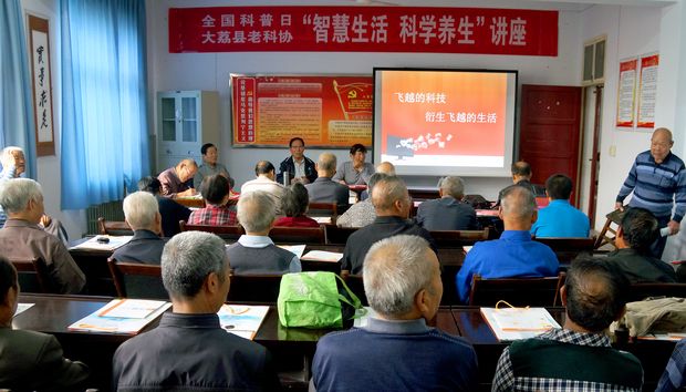 9月20日,大荔县老科协以“万众创新 拥抱智慧生活”这一主题,在县培训中心举办了一场“智慧生活 科学养生”科普知识讲座。大荔县老科协教育、水利、农林、畜牧、农垦、文体分会和安仁、双泉、城关、官池等镇老科协近60名会员聆听了讲座。大荔县老科协会长张让欣主持讲座。